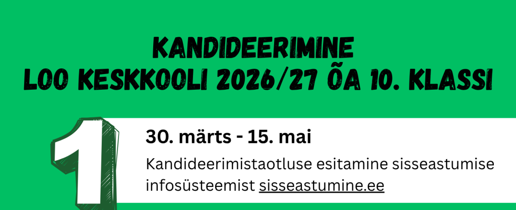 Õpilaste vastuvõtt 10. klassi toimub Jõelähtme Vallavalitsuse 19. märts 2026 korraldus nr 185 “Loo Keskkooli õpilaste…